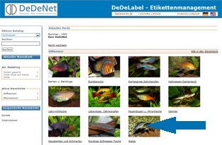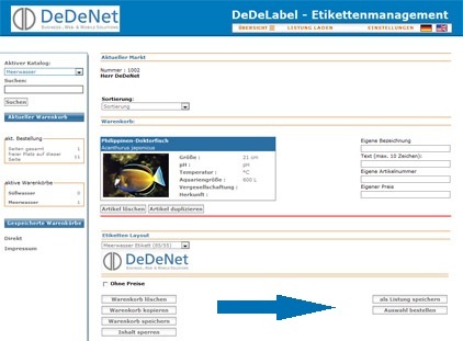 4.   Gewünschte Arten für Etikett durch einfaches Anklicken in DeDeLabel in den Warenkorb legen